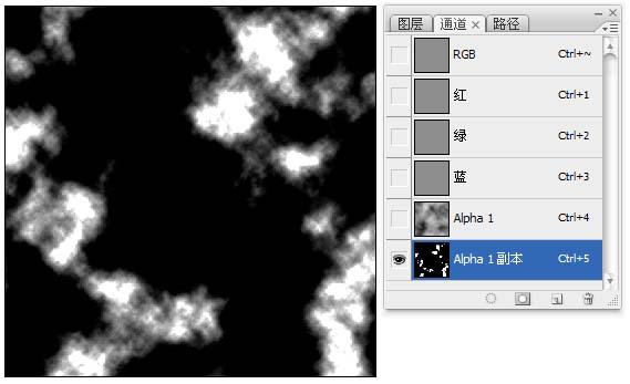 1、打开下图所示的墙壁素材,点通道面板,新建Alpha1通道,执行“云彩”滤镜。