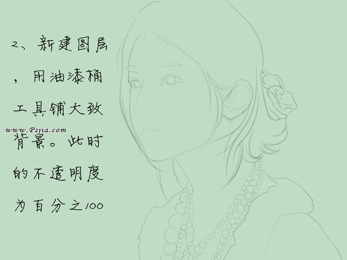 | 2、新建图层,用油漆桶工具铺大致的背景,此时的不透明度为100%。 |