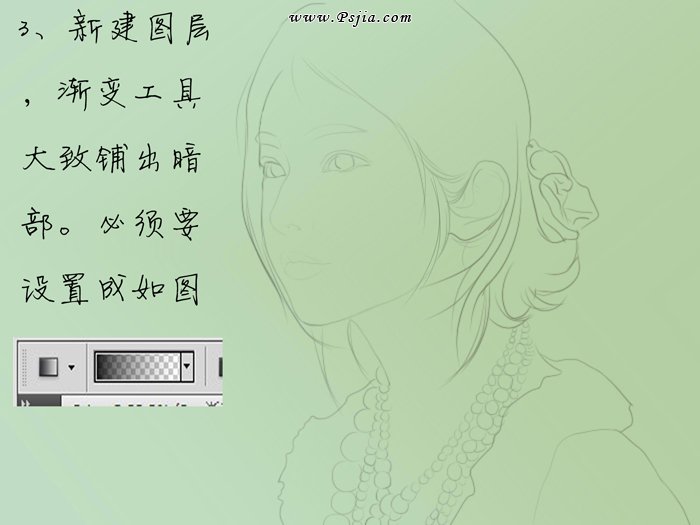 | 3、新建一个图层,用肩膀工具大致铺出暗部。渐变颜色设置如下图。 |