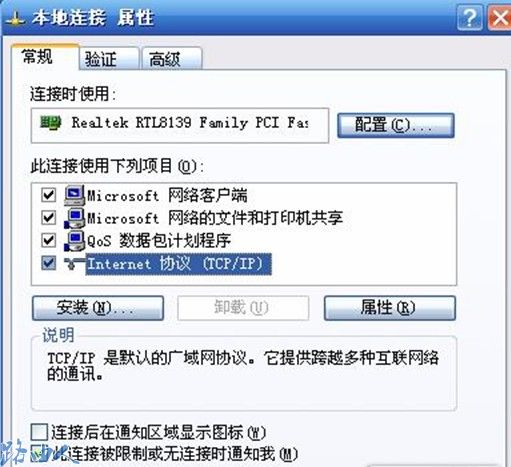 (1) 单击“开始”按钮中的“控制面板”,在“控制面板”窗口中打开“网络连接”,右键单击“本地连接”,选择“属性”选项,在属性对话框中双击“Internet协议(TCP/IP)”;