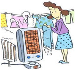 7、利用电器取暖、烘烤衣物,要注意安全。
