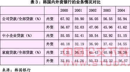 仅仅经过短短的5年多(2000年以来)的时间就对韩国银行开放的成败下结论还为时尚早。目前来看,外资银行的进入使得韩国银行业发生了不小的变化。通过银行业全面的开放,韩国政府成功地打破了与大财团的过从甚密的关系,商业银行成为了独立的市场主体。从这一点上看,韩国政府推行银行开放的目标基本实现了。但是,外资的大举进入的确也产生一些比较突出的问题。