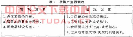 论文提要:学生的恐惧心理在瓷共体育谈甲香运存在着。但是可以克服的,心理训练方法推多.主要通过学生末身采消除。教师只能起到引导和帮助作用。要求教师在教学中认宾对待并科学解决它。