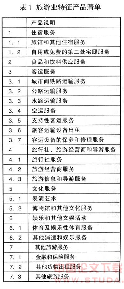 《旅游卫星账户:推荐方法框架》强调:“任何想编制本国产品清单的国家或编辑人员,都应从旅游业特定产品暂定清单中选择产品”,“任何想编制其本国旅游业特定活动清单的国家,应参照适用旅游组织为了数据的国际可比性而编制的《标准国际旅游业活动分类》。”表1和表2是《旅游卫星账户:推荐方法框架》中列出的旅游业特征产品和旅游业特征活动清单。
