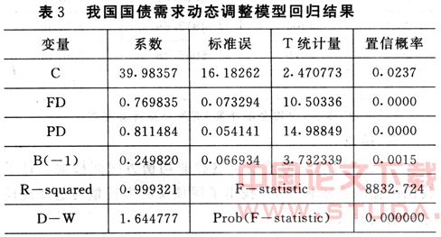 根据国家国债发行的年度数据对模型(5)进行估计,结果见表3所示: