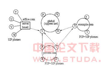 现存的基于会话初始化协议(SIP[1])的用户/服务器网络电话结构为每个域使用一个注册服务器。主要的系统消费是由一个专用系统管理器造成的维护和配置。这意味着在一个小型网络中迅速地建立系统(例如,紧急通讯或会议)是很困难的。另一方面,端到端(P2P)系统[2]因为没有单点错误,所以是可测量和可靠的。P2P系统对全局、灾难性失败是强壮的,虽然单个的结点可能会失败。
