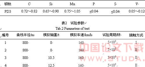 试验选用 PD3 热轧钢轨材料,其化学成分见表 1;试验参数见表 2。
