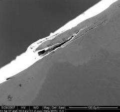 对各试样横纵断面裂纹的电镜观察结果表明,试样磨面的裂纹均起源与试样表面,且与
