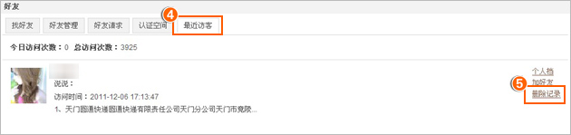 温馨提示: 目前好友来您QQ空间访问过,您或好友本人操作删除本次QQ空间最近访客(来访记录),但在好友自己空间个人中心里“我看过谁”,仍然可以看到好友曾经访问过的最近10个空间的记录。