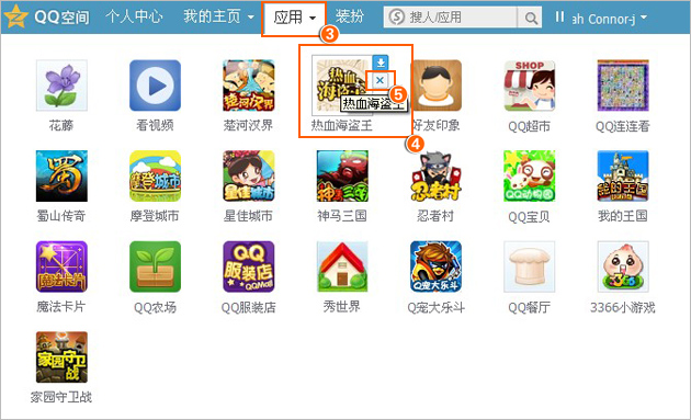 方法二:进入QQ空间,点击“应用”,在应用列表上会出现您所有的 “应用”然后把鼠标放在需要隐藏的应用上面,会出现一个